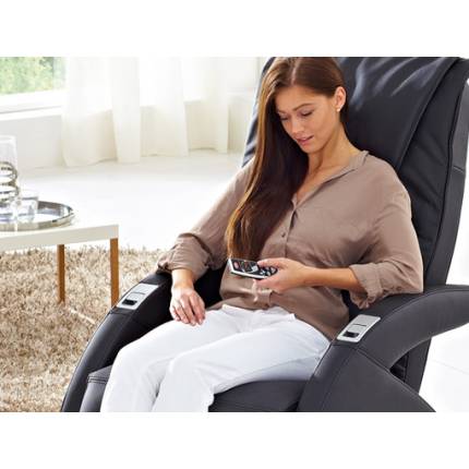 Наклон спинки массажного кресла автоматически регулируется в пределах от 110° до 150°. Угол подставки для ног также регулируется в диапазоне от 0° до 90°.