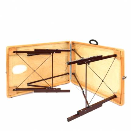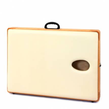 Складной массажный стол "Престиж" сочетает в себе изящный внешний вид и надежную конструкцию. Крепкий буковый каркас обеспечивает высокую прочность и одновременно является прекрасным обрамлением ложа стола. Алюминиевые ножки с полимерным покрытием и система стальных тросов значительно облегчают конструкцию и придают ей исключительную устойчивость. При складывании стол трансформируется в переносной чемодан, удобный для хранения и транспортировки. В комплект со столом включены удобная сумка для переноски и подушка-заглушка для люверса. Покрытие ложа выполнено из высококачественного немецкого кожзаменителя Vowalon - эластичного, износоустойчивого и приятного на ощупь материала, аналогичного натуральной коже.