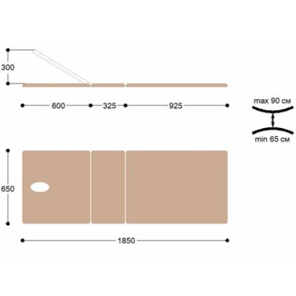 Складной трехсекционный массажный стол с регулировкой высоты 185х62см (Гелиокс)